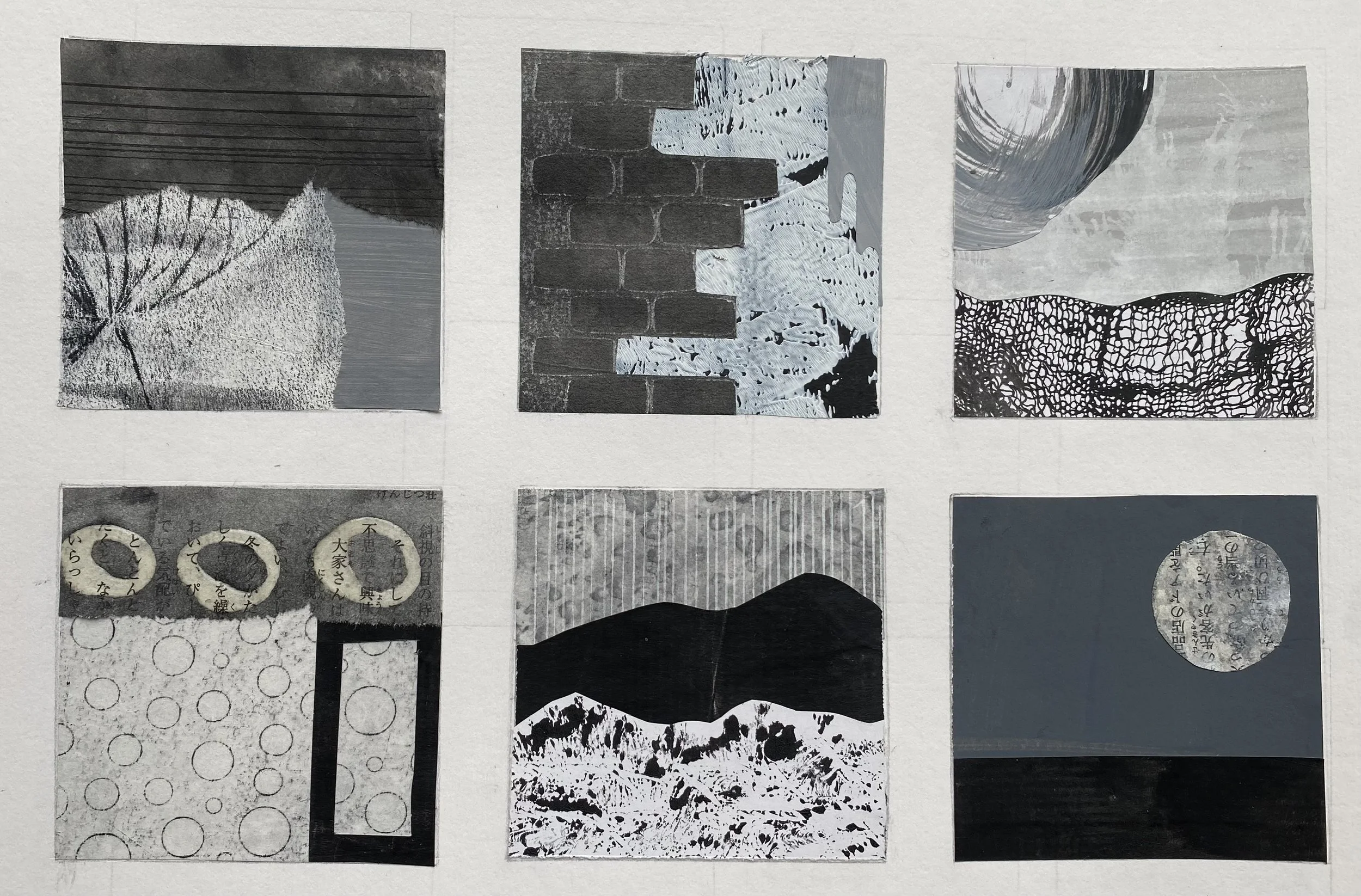 Started with 2 x 2 inch grid using two value scollage papers